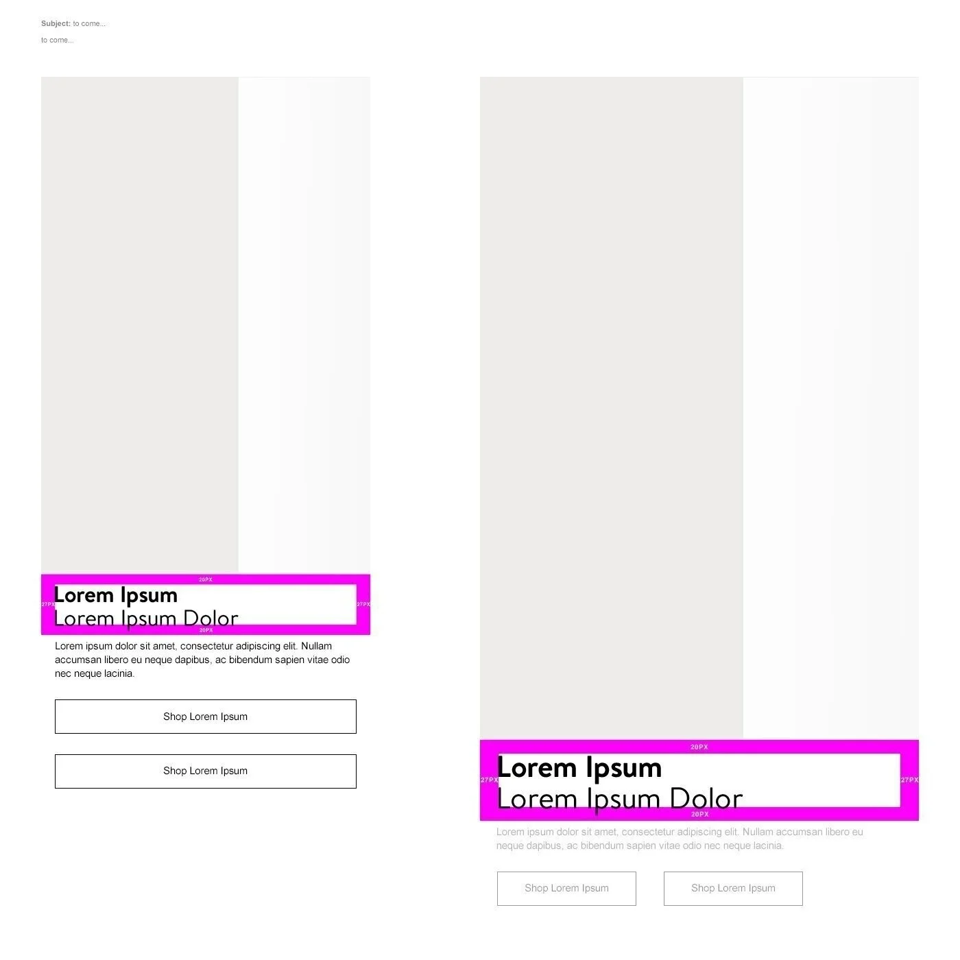 I was asked to create outfitting creative that could then be turned into templates for the email design team. I designed two different email options to showcase outfitting. These were then documented into the Template Guidelines document and turned into PSD templates for the email design team to use.